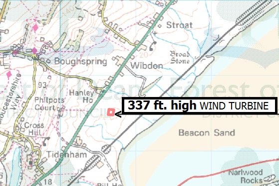 The Blades Will Distractingly Rotate 337 feet (1/3rd. higher than Gloucester Cathedral!) above The Severn, along side one of the most dangerous sections of the A48, already designated The Most Dangerous Road In EUrope – opposite Hanley Farm Shop. the bus stop, two lane junctions, various property driveways & the public lay-by
